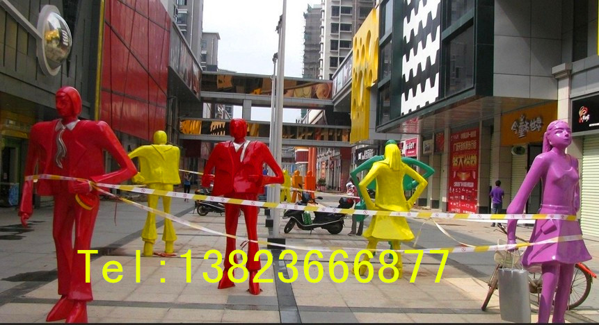 玻璃钢雕塑 商业街抽象人物景观雕塑 卡通人物玻璃钢 深圳鸿城艺术雕塑有限公司专业制作玻璃钢抽象人物雕塑 玻璃钢雕塑是一种新型的雕塑,也是雕塑材料发展至今被用得越来越多的材料。梁思成先生说过:“艺术之始,雕塑为先”。雕塑艺术从石器时代开始发展至今已有几千年的历史,雕塑作为一种重要的艺术表现形式,凝聚着人们对生活的理解与期望,已经深入到人们文化生活的多个方面。