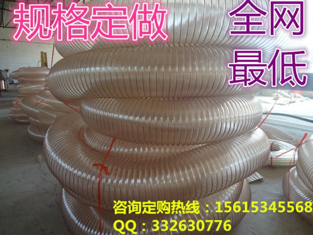 直径:25mm至500mm。厚度:0.6MM、0.9MM、1.2MM 、1.5mm。颜色:透明 长度:每卷10米、15米、20米。用于食品工业,医药行业,木工机床,物料运输,如固体如粉尘,粉未,纤维,屑片,砾石,粮食,颗粒,气体和液体环境,真空 吸尘器,输送系统。 电议:15615345568