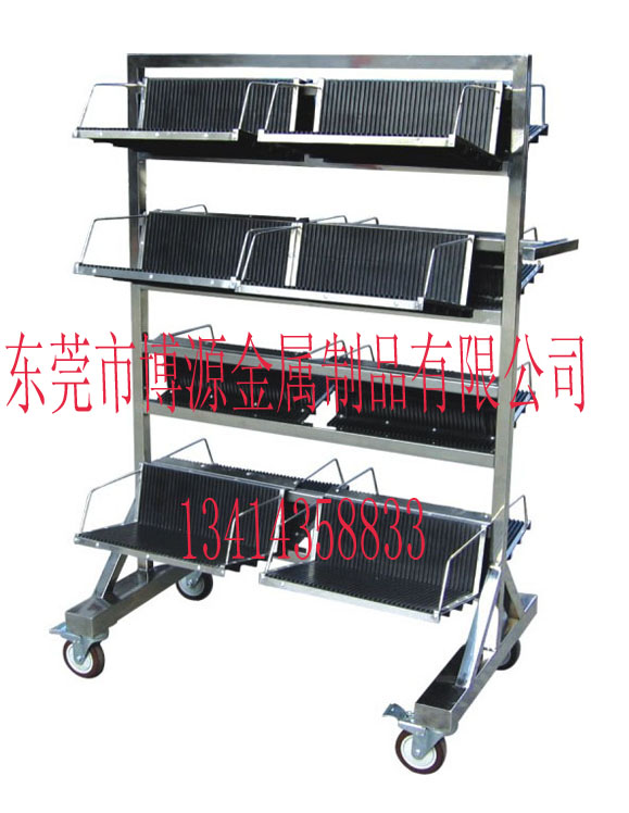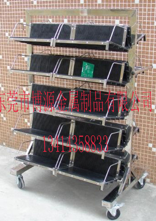 PCB挂篮车简介:一般防静电周转车根据客户提供的尺寸设计制作,做到最合理装载,并可多列排放,有效利用厂房空间,增大电子元件、PCB板、无尘车间部件储存量,节约生产成本。
