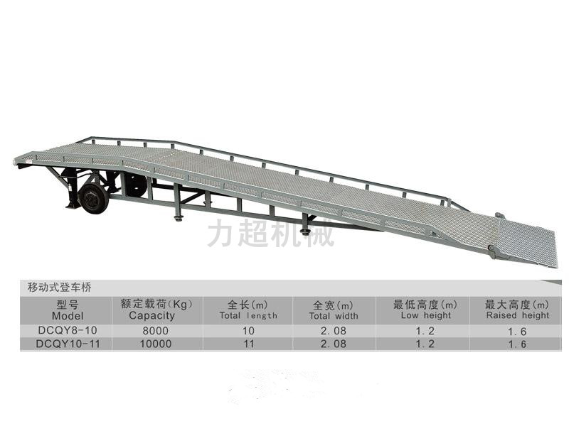 动登车桥是与叉车配合使用的货物装卸专用辅助设备,适用于装卸作业不固定的场所,如工厂、大型仓库等。叉车可通过其从地面直接驶入货车内部进行作业。