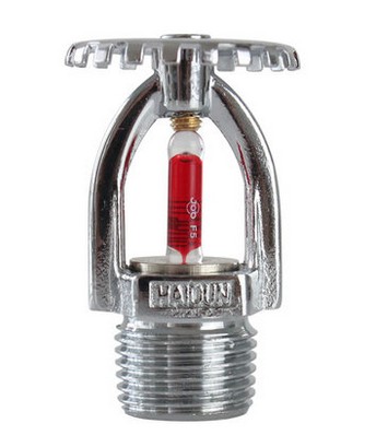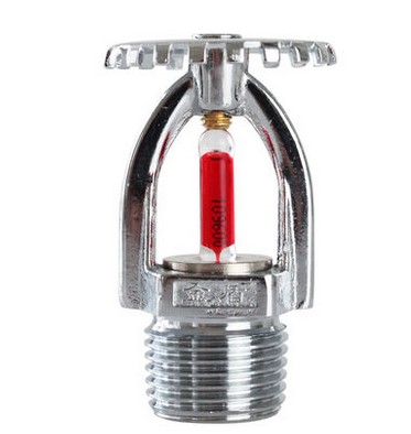 消防专用玻璃球洒水喷头是自动喷水灭火系统中的关键部件,能起到探测火警并通过自动启动喷水来抑制或扑灭火灾。广泛用于保护宾馆、医院、仓库、宾馆、商场、娱乐场所、医院、影剧院、办公楼及车库等场所。当防护区发生火灾使环境温度升高时,玻璃球内的液体受热膨胀,达到玻璃球动作温度后,就会爆破,于是密封件脱落,喷头开启并按设定的洒水形状喷向保护区进行灭火。