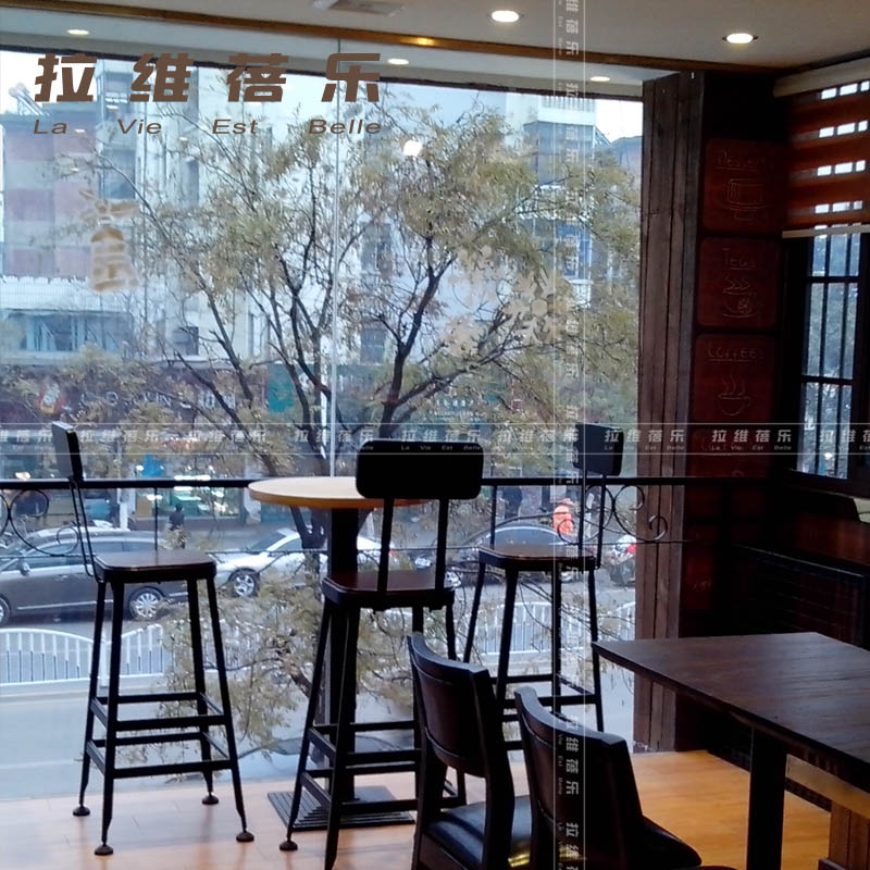 (星巴克)咖啡厅铁艺吧椅 (星巴克)咖啡厅实木长桌 铁艺桌椅