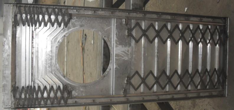 4、钢板防护罩装置使护罩同动且平行(避免了一般剪力式防护罩仍有蛇行的缺点)。