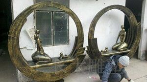 玻璃钢雕塑表面处理:通过彩绘、喷涂、贴金等手法,可以做到仿金银铜,仿古铜,仿玉、仿古等效果。例如:仿古铜,手法与效果就有十多种,色泽自然、饱满、铜质感强烈、钢锈真实,图案、纹理都非常精美。