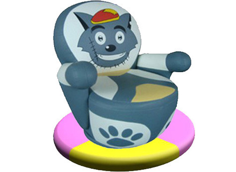 儿童游乐设备-灰太狼转椅,整体360°不间断顺时针方向匀速旋转。大连才杰游乐设备有限公司是"宝贝渡口"旗下的制造企业。公司专门从事淘气堡,游乐设备,儿童游乐设备,游乐场设备,室内儿童游乐设备的市场研发、生产、销售及品牌推广、连锁经营。
