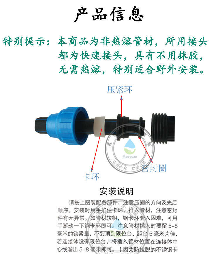 莱芜茂源节水灌溉有限公司是一家灌溉系统专业公司,主要生产:PE管、管件、PVC管材、管件、贴片式滴灌带、内镶圆柱式滴灌管、滴灌喷灌配件、毛管、过滤器、施肥器、进排气阀、打孔器等上百种产品。是集经营、设计、安装为一体的专业性节水灌溉生产企业,产品各项指标均达到国家标准。可为农田、大棚、园林景观、环境工程、建筑工程提供先进的服务。
