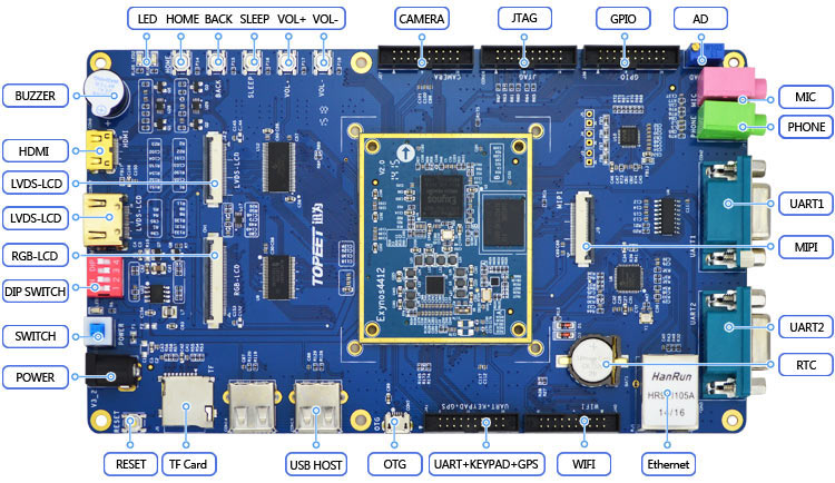 iTOP-4412精英版搭载三星Exynos四核处理器,配备1GB内存,4GB固态硬盘EMMC存储,兼具快速读取与超大容量,纵使海量思考也能及时处理。独家配备三星S5M8767电源管理,最优架构!