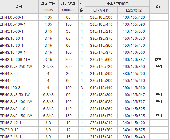 电容器分户内型和户外型,并有适合于湿热地区,高原地区及污秽地区等各种特殊环境用的产品。