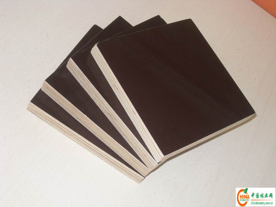 4、覆膜建筑模板耐水性能强,生产中采用酚醛树脂经热压粘合而成,水煮4小时不开胶,混凝土养护过程中遇水不变形。
