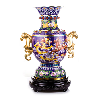 国宝景泰蓝《跃马兴隆》400-0690-111微信sczg66订购热线136-8327-2528戴嘉林大师设计 。有錾刻高端工艺,制作工艺复杂,难度大。收藏中国网www.sczg.cc
