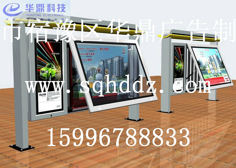 江苏省宿豫区华鼎广告设备厂位于宿迁市宿豫区顺河镇工业区,是国内生产智能滚动灯箱行业设计、生产最具规模的企业之一,公司拥有一流的设计能力和钢结构生产加工能力,现有生产面积10800平方米,拥有数控折弯机、数控剪板机、数控等离子切割机、数控冲床、喷塑流水线等加工设备,满足了不同的结构制作、不锈钢加工的需求,现拥有专业设计人员6名,员工50余人,已经形成以公交站台、候车亭,智能滚动灯箱为主的专业化生产规模,已经形成以指路牌灯箱、滚动灯箱、阅报栏和候车亭为系列的40余款产品。