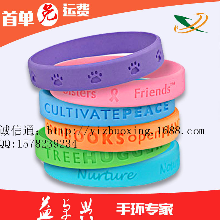 深圳市益卓兴礼品有限公司,坐落在深圳市宝安区。是一家专门从事硅胶手环的研制与生产的公司。公司已经进入这行有5.6年的时间, 每年为全国,全世界的客户生产制造了大量的手环。目前公司主要生产的硅胶手环有凹凸刻手环, 混色,分段手环。 丝印手环,凹刻凸刻上色手环。喷漆手环,分层手环, 手环钥匙扣, 手环戒指等。