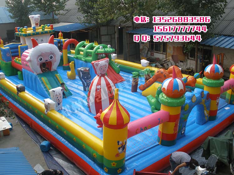 充气城堡价格按每平方报价,具体产品可以根据客户的要求或场地大小定做。淘宝我们只做定金链接,余款物流代收。请您拍下之前与掌柜联系哦!