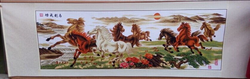 绒绣十字绣八骏图2.5米立体感强厂家直销