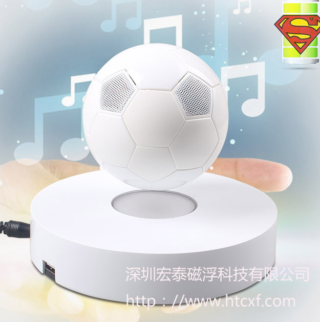 本蓝牙音箱利用了先进的磁悬浮系统技术及蓝牙数据传输技术,将足球几何比例缩放的音箱悬浮物体无支撑地悬浮在空中,近距离触摸高科技,给人以神奇的美好感觉。产品具有极佳的观赏性、科普性、新厅性及趣味性;是足球迷和音乐爱好者的最爱,是空间装饰、广告礼品的最佳选择。