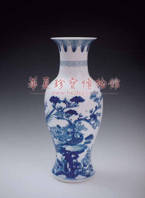 器身颈绘《锦鸡芙蓉图》,腹绘《锦鸡碧桃图》,称锦鸡有“五德”之全。配上四季花卉寓意花开富贵、锦绣前程。