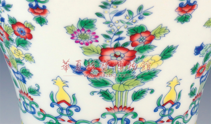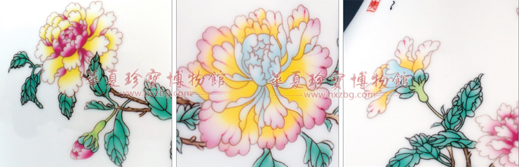 因所用釉上彩釉料配方极为复杂,所以烧成后的花卉显得格外富丽华美,但也因釉料化学成份太过复杂导致温度控制要求过高,使烧造成品率极低。