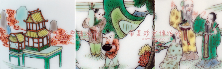 本作品再造工程中瓷绘部分在故宫专家的指导下,采用“双勾填墨”技法,参考馆藏实物与数码图案精确绘制,完美达到了形与神的兼备!