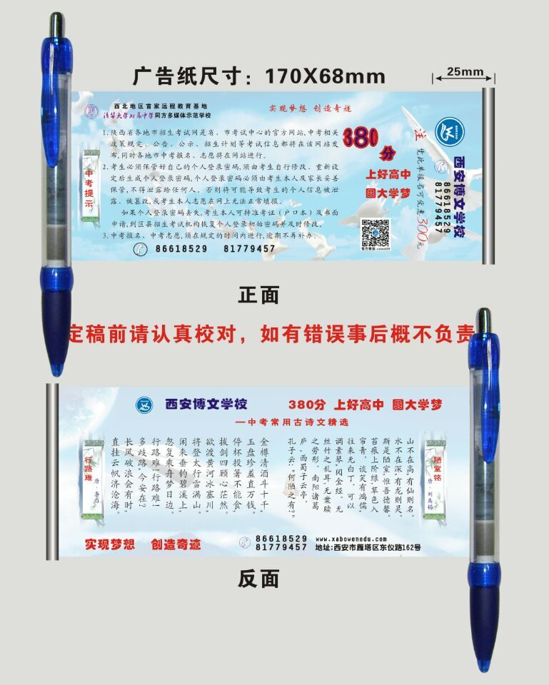 西安广告笔定做 西安拉画笔定做 西安广告圆珠笔定做