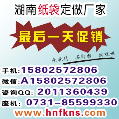 以上信息由长沙富克纳斯纸袋子厂提供,如要进一步了解袋子相关内容或者不明白之处请联系熊经理-----微信/电话同步:15802572806---业务QQ: 943093426-- -----富克纳斯袋子厂竭诚为您服务!-----袋子厂