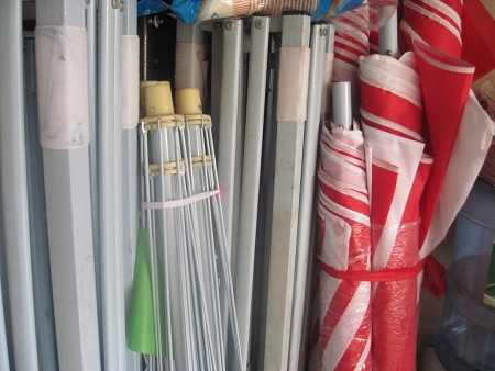 大型太阳伞的抗风能力由主要有伞座,伞柱及伞骨决定,伞座一般有多铁件、水泥,大理石及注水等类伞座。伞柱伞骨用料一般分五种------木质、铁质、铝合金合、不锈钢和新型复合材料等。木质工艺复杂,成本较高,容易损坏,市场上已不多见;同时具备高强度,不变形、不生锈的优点,有很强的抗风性,由于材料性能的优势尺寸能做的很大,就是能生产的还不多,市场较难买到,能选择到这样一把不怕风的太阳伞最好。总之,木质材质容易损坏,铝合金合及不锈钢材料的太阳伞质好,复合材料的太阳伞个大抗风。