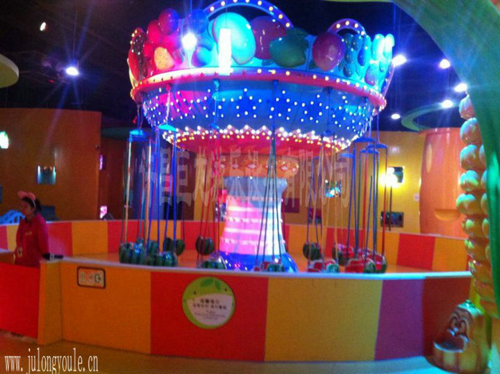 许昌巨龙游乐2015最新型公园游乐设备水果旋风, 一种新型公园游乐设施,也称水果飞椅,是小型飞椅的一种,有16个座椅。水果旋风游乐设备是一款经典的游乐项目,其靓丽的外表和充满刺激性的游戏形式很受欢迎。外在的水果造型色彩鲜艳,栩栩如生更是让人驻足。由于转盘的的升高,垂直柱头角度渐渐偏转,使游客犹如置身于波涛起伏的大海中其乐无穷设备顶部飞檐和中心柱玻璃钢均配有彩灯,在夜幕下更是美轮美奂。可以快乐的水果共舞,是多么美妙的事情。