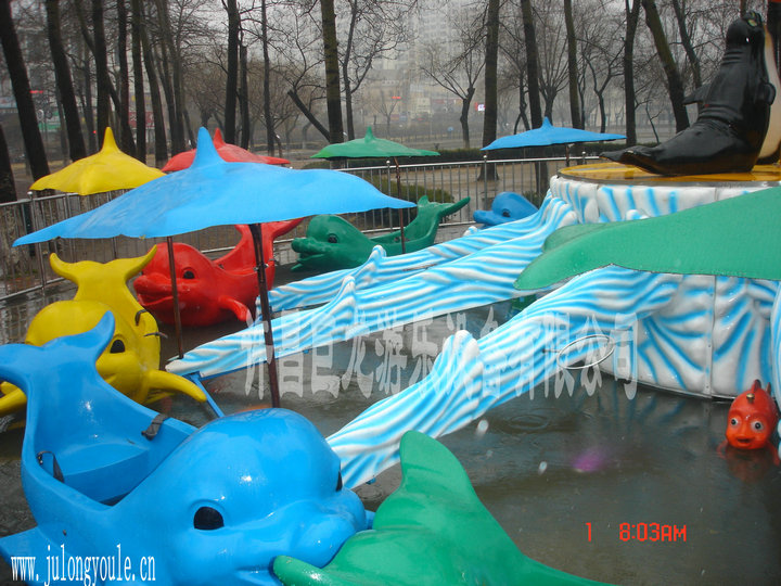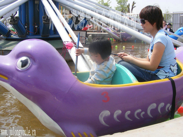 海豚戏水大型游乐设备非常锻炼小朋友的直观参与感觉和动手能力,对小朋友的协调能力有很大提高帮助。海豚戏水里有逼真的海豚,样子活灵活现;小朋友们坐在其中仿佛身临真正的海洋世界,给小孩天然的一种神秘感和诱惑性。设计出海豚座舱,三豚戏珠等模型景观,并且配合各种小型海洋生物使得设备在外观上更具吸引力。设备启动后游客乘坐在海豚船上随着设备轨迹旋转,还可以利用船上配备的小鱼网打捞水中漂浮流动的色彩鲜艳的小球。凭借我们独特的创造力及精湛的专业技术,公司推出了一系列的新型产品,希望建立长期、稳定、可靠的贸易伙伴关系。