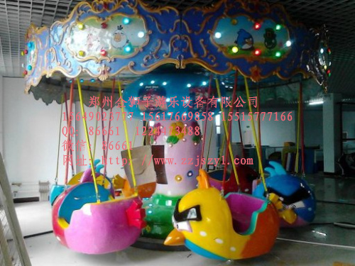 愤怒的小鸟今天要发货了,试车时,音乐缓缓响起,小鸟随着欢快的音乐飞了起来,闭上眼睛,我好像也飞了起来,这种感觉真好。简易版的顶棚采用pvc材质,颜色鲜艳色彩靓丽,造型可爱逼真,可以在公园和广场经营,带音乐带定时 。