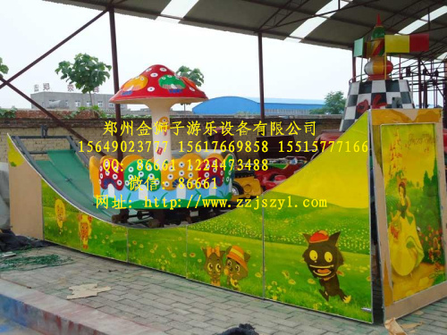 弯月飘车属于轨道类游乐设备,又叫弯月蘑菇,时代冲浪,弯月蘑菇飘车。弯月飘车的轨道颜色鲜艳,看起来像是刚下过雨,天空中出现的一道五彩缤纷彩虹。车在轨道上跑起起伏伏,有了一种翻山越岭的感觉,既刺激有好玩。弯月飘车是一款移动式无基础时代冲浪,左右漂移,360度旋转,整机可折叠,下边有轮子,可升降,外装饰是活动的,另配备有300盏灿烂闪烁的彩灯和动听的音乐,使人们在游玩时犹如置身波澜壮阔的大海之中,刺激而无惊险恐惧之感。集摇摆机 旋转飞机 海盗船三种设备的功能于一身,真正的小投资 大回报 。