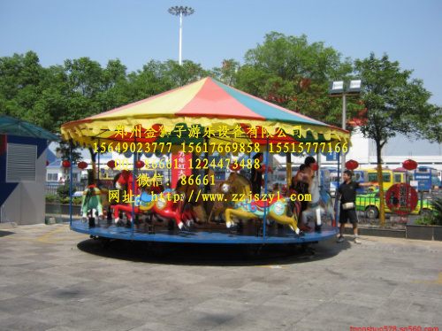 产品说明:豪华转马游乐设备又称旋转木马,豪华转马游乐设备是转马类游乐设备的一种游艺设备。外形新颖,颜色绚丽,是青少年朋友们非常喜爱乘坐的游艺设备,启动之后转盘匀速转动,形态各异的转马随之上下起伏,使游乐者产生纵马扬鞭、驰骋疆场的感觉。本产品适用于公园游乐场、少年宫、生活广场、社区等人口密集流动场所。该产品采用玻璃钢材料制作,具有环保、安全、耐腐蚀、稳定性好等特点,可根据场地条件定做。转马按装饰和用途可分为简易转马、中豪华转马、豪华转马、室内转马,按传动方式又分为下传动转马和上传动转马。信息来源:郑州金狮王子儿童游乐设备有限公司 网址:www.jswz.com