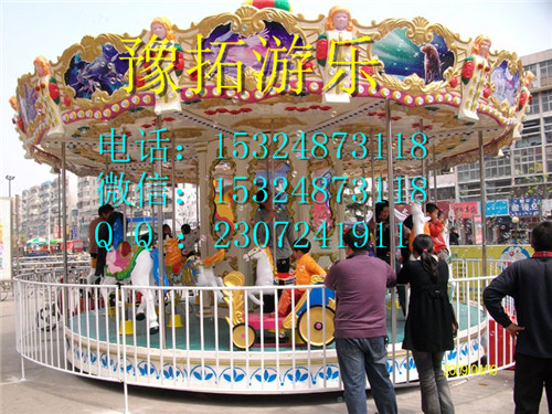 本公司供应的豪华转马有8座豪华转马,10座豪华转马,12座豪华转马,16座豪华转马,请根据你场地的实际大小,选择适合你场地的豪华转马。转马分为豪华转马和豪华转马两种,是一款更新换代较快的游乐设备。豪华转马对孩子的吸引力和游客对它的情有独钟不因时代的变化而改变,现在豪华转马的设计已然突破以往单纯以转马为结构的造型,变化成各种各样的造型设计,客户可根据自己的意愿来决定转马的造型颜色设计。不一样的设计使得豪华转马的内容更加丰富,吸引和趣味性以及观赏性更加强烈。它是集游乐,亲子,交流于一体的游乐项目。让您的经营不受年龄的限制。此款转马充分展现了转马的浪漫气质与温馨气氛,更有助于您招揽生意,让您的经营更具竞争力!豪华转马外形新颖,颜色绚丽,是青少年朋友们非常喜爱乘坐的游乐设备,启动之后转盘匀速转动,形态各异的转马随之上下起伏,使游乐者产生纵马扬鞭、驰骋疆场的感觉。