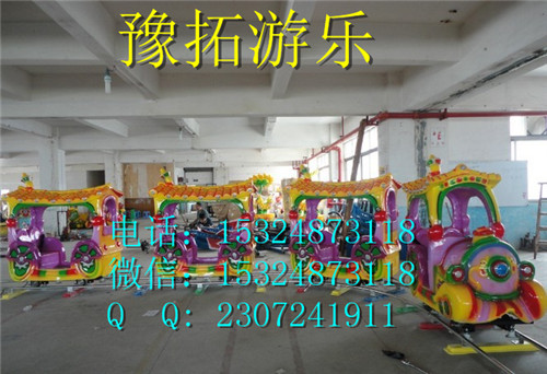 广场轨道小火车价格启动时火车开动并同时放各种儿童歌曲.共有四节小车箱,在一圆形轨道或8字型轨道上来回跑动(轨道可以定做),是一款理想的投资产品.仿制卡通动物形象生动逼真,色彩鲜艳,质量可靠,价格优惠。我厂生产的的轨道豫拓游乐分为两种,一种是电柜式的,一个是电瓶式的;每个轨道上有四个小车子,车子可跟据客户的要求做出相应的增减!广场轨道小火车价格可以放置在各种人群密集的公园,广场,商场儿童游乐园,小区等公共场所.后火车四节车厢客户可以根据自己喜欢任意选择配置什么样的外形(参考摇摆机外形).圆形充电型的轨道小火车轨道分6节,可以随意拆卸,因此可以根据需要随意要放在任何经营场所,组装和拆卸都很方便;详细配置为(标准)。