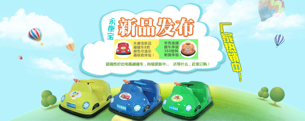 深圳市永康宝游乐设备厂家主要生产有新款小汽车碰碰车,咪咪碰碰车,甲壳虫碰碰车,毛绒玩具车,儿童挖掘机、充气电瓶车、儿童摇摆机等等室外游乐设备和室内游乐设备。