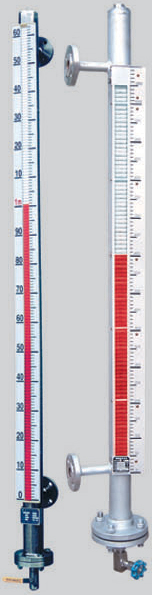 液位计根据浮力原理和磁性耦合作用原理工作的。当被测容器中的液位升降时,液位计主导管中的浮子也随之升降,浮子内的永久磁钢通过磁耦合传递到现场指示器,驱动红、白翻柱翻转180°,当液位上升时,翻柱由白色转为红色,当液位下降时,翻柱由红色转为白色,指示器的红、白界位处为容器内介质液位的实际高度,从而实现液位的指示。加装限位开关实现液位报警与控制。加装液位变送器实现标准信号输出供显示与控制。