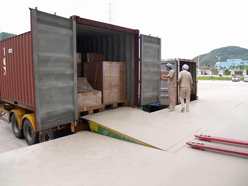 固定装卸台的桥板可上、下倾斜,其外端可高出或低于货台平面,使之与车厢等高。桥板的顶端有一翻板,自动搭在车厢边缘,使货台与车厢平稳过渡。