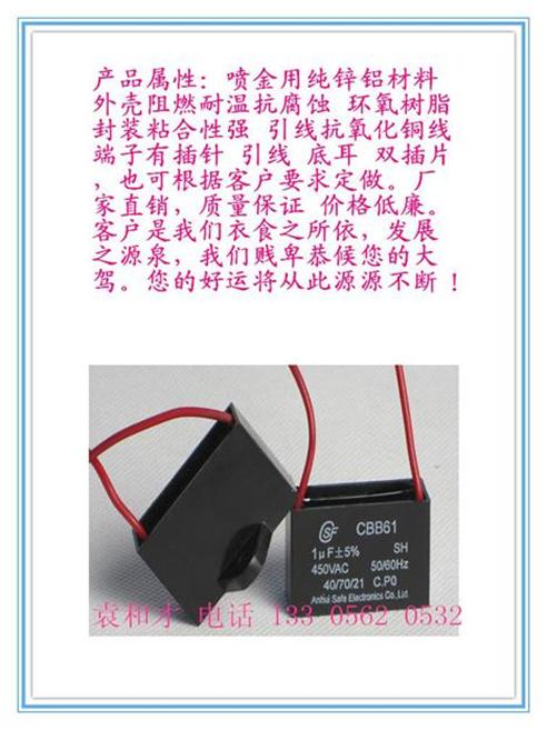 2. 用于频率为50Hz交流电源供电的单相电动机启动和运转,可连续工作。