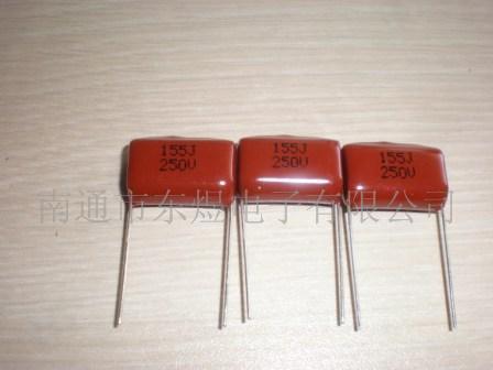 特点: 以金属化聚特酯膜作介质和电极,用阻燃绝缘材料包封单向引出,具有电性能优良,可靠性好,耐温高,体积小,容量大和良好自愈性能。
