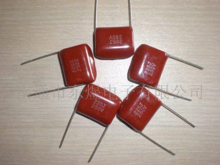 特点: 以金属化聚特酯膜作介质和电极,用阻燃绝缘材料包封单向引出,具有电性能优良,可靠性好,耐温高,体积小,容量大和良好自愈性能。