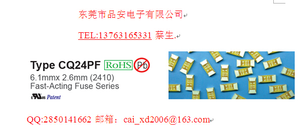 安德公司长期现货供应CONQUER贴片保险丝CQ24PF:500MA/350V. 750MA/350V. 1A/350V, 1.5A/350V, 2A/350V, 2.5A/350V, 3A/350V, 4A/350V, 5A/350V, 6A/350V, 7A/350V,8A/350V, 10A/350V, 12A/350V.