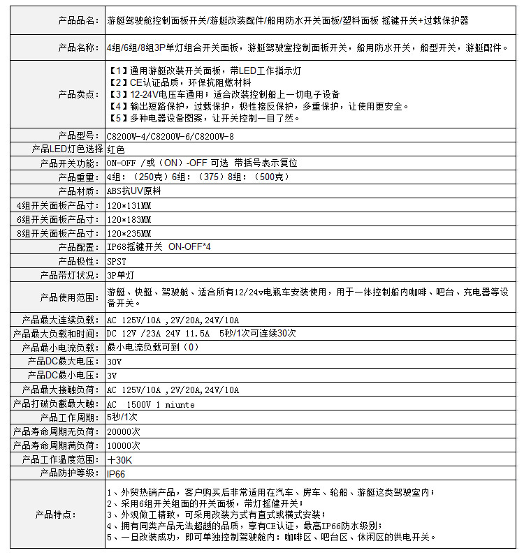 wish热卖商品游艇驾驶舱控制面板开关游艇改装配件船用防水