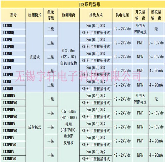 联系电话:0510-85124408,13373666091陆小姐,无锡宇轩电子科技有限公司专业经销、批发:美国邦纳激光测距传感器LT3PI、光电传感器、安全光幕等;种类齐全、一手货源,进口原装,正品保障!更多产品信息见公司网站:http://detail.1688.com/offer/45587569506.html?spm=a2615.7691456.0.0.tkelRh