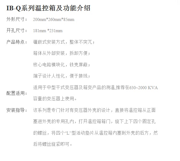 五、IB-Q系列干式变压器温控器常规型号及功能: