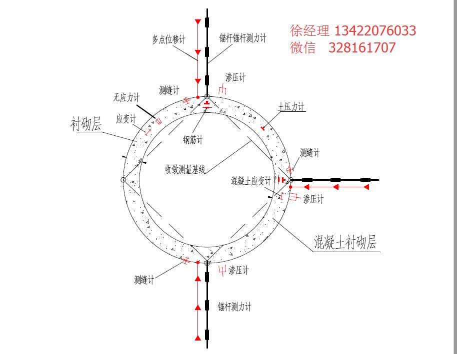 隧洞安全监测主要为隧洞洞身的应力、应变、围岩渗透压力、围岩的位移及锚杆应力监测等内容,在施工期开挖时,还须对围岩的稳定性做收敛观测。