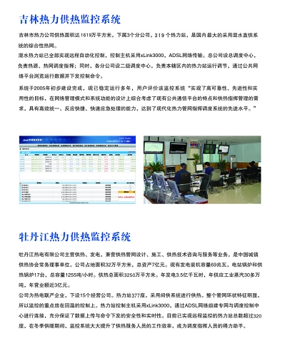 凭借着公司丰富的供热行业监控项目实施经验和成熟的软件开发技术,我公司推出了中国供热行业网络平台。这个平台为用户提供了全面而且完善的系统功能来帮助用户完成对整个管网进行的监控和运行分析。平台同时提供多种个性化的服务来简化供热企业管理人员、调度人员的日常工作。对热力企业来说,使用平台的优点在于:从技术方面来看:企业无需再配备IT方面的专业技术人员,同时又能得到最新的技术应用,满足企业对信息管理的需求。从投资方面来看:企业只以相对低廉的“月费”方式投资,不用一次性投资到位,不占用过多的营运资金,从而缓解企业资金不足的压力;不用考虑成本折旧问题,并能及时获得最新硬件平台及最佳解决方案。从维护和管理方面来看:由于企业采取租用的方式来进行业务管理,不需要专门的维护和管理人员,也不需要为维护和管理人员支付额外费用。很大程度上缓解企业在人力、财力上的压力,使其能够集中资金对核心业务进行有效的运营。xLink供热网络平台带来的变革:从粗放管理,经济效益不高到精细化管理实现经济效益的最大化。从运行人员素质低,误差大到通过数据化存储、挖掘分析以及设备预警达到经济化运行。从滞后的人工维护到热力站自动化和智能化运行。从多人巡站管理到热力站的无人值守运行。从高耗能运行到实现节能的集合,管网,锅炉,热力站(按需供热分时分区),实现节能最大化。产品基本资料:产品名称:济南热力热网系统;品牌商标:x-Link;主营产品行业:工业品、仪器仪表、专用仪器仪表;公司注册地址:北京市海淀区车道沟1号1号楼西九层;