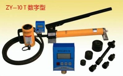 ZY-10T/20T/30T/50T/100T型锚杆拉力计是由手动泵、中空液压缸、数显压力表、带快速接头的高压油管、锚具、转换头拉杆和手提便携箱组成。10~30吨液压缸为中空自复位式,50~100吨液压缸为手动复位式。本仪器中的数值显示部分为2010年升级的一体式多功能显示仪表,中空液压缸加有防尘系统,使用寿命长,可直接读取锚杆拉力值(kN),并有自动计算、峰值保持、存储和查询功能,特别适合试验室和现场使用,操作简单,易学易用。