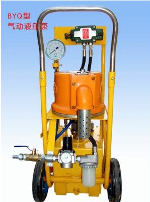 技术特点:高压液压泵的工作部位为双作用式气动液压增压泵。换向机构为特殊形式的先导式气控配气换向装置。进入压缩空气后,活塞移动到气缸上或下端部时,使上或下先导阀动作。气控信号瞬间推动配气换向装置换向,从而使气缸中的活塞作往复运动。气缸活塞上或下作用的力,作用于液压缸中的柱塞,由于气缸活塞的面积比液压缸中柱塞面积大,因此使油增压。高压油经高压过滤器,进入手动换向阀。最后通过快速接头与脱模液压系统连接。采用新型往复式气动泵,工作性能稳定,可靠性高,适用性强,噪音低.