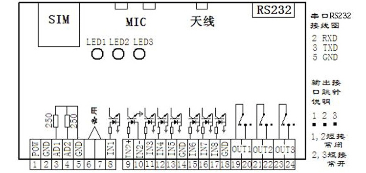 ● 有八路开关量光电耦融离输入、两路模拟通道输入、三路继电器输出。