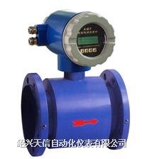 EMF-TX系列电磁流量计的测量原理是基于法拉第电磁感应定律;导电液体在磁场中作切割磁力线运动时,导体中产生感应电势e为: