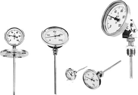 双金属温度计是一种测量中低温度的现场检测仪表。可以直接测量各种生产过程中的-80℃-+500℃范围内液体蒸汽和气体介质温度。公司可按样品或图纸定做各种特殊型号热电偶、热电阻、双金属温度计及温度传感器保护套管。
