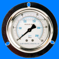 轴向带边压力表利用表自带安装边安装在控制设备面板上,压力表接管位于表后方,便于操作工人观察系统压力变化。外壳材料有铁壳和不锈钢壳二种,型号规格有Y-50/Y60/Y100/Y150。轴向带边压力表适用测量无,不结晶,不凝固,对铜和铜合金无腐蚀作用的液体、气体或蒸汽的压力。